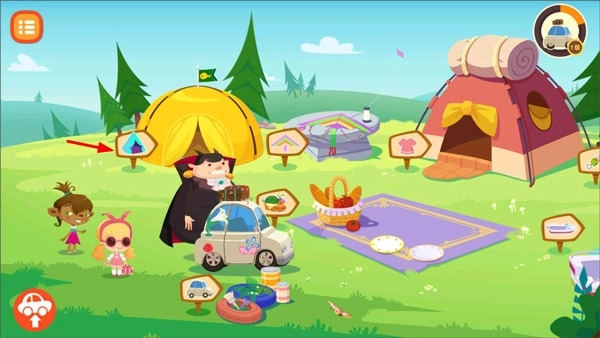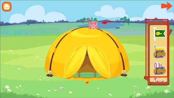1、启动糖糖郊游记游戏后,玩家只需点击帐篷按钮,就能进入搭帐篷的游戏界面;