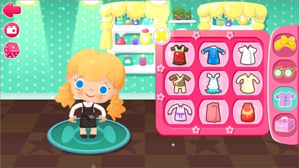 玩家帮助糖糖打理美容院的日常事务,发型设计部分配备多种剪发工具和染发色彩方案,能依据顾客脸型来调整发型的长度与层次;饰品搭配板块有耳环、项链、发饰等数十种配饰,可根据顾客当天的穿搭风格进行搭配组合;面部彩绘允许自定义绘制图案,玩家可以挑选爱心、星星之类的基础模板,也能自由发挥创作;美甲护理包含修整指甲形状、涂抹底油、选择图案贴纸等流程,支持单个手指或整只手采用不同的设计。