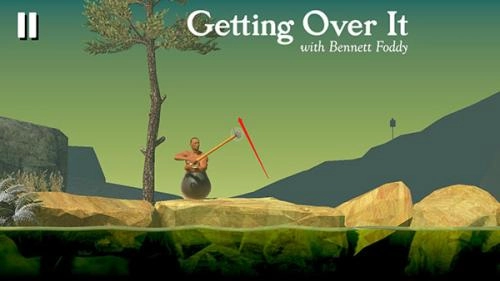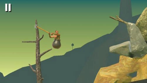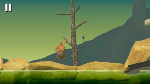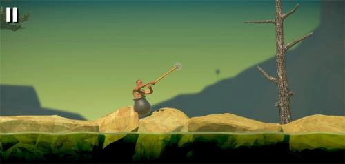 2、爬山玩法很魔性,你要操控一个装在大缸中拿着锄头的男人爬山,看似很简单。