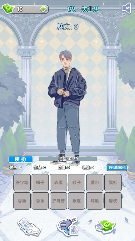 这是一款以直男视角打造的恋爱模拟游戏,玩家可以通过改造自身形象、经营社交关系、解锁故事剧情等方式,感受追求女生的趣味。游戏剧情轻松诙谐且不失真实感,既能让玩家体验自由选择的畅快,也能在游玩过程中学到一些两性相处的实用小技巧。