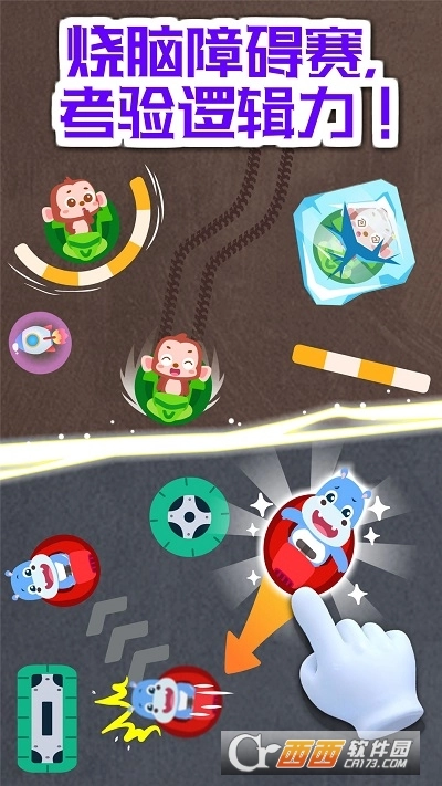 冰块把小伙伴困住了,宝宝快开动碰碰车,撞碎冰块,营救伙伴!赛场上的轮胎和风扇,会阻碍碰碰车的行驶,宝宝要规划好路线,巧妙躲避障碍。