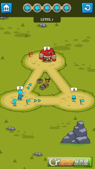 2、兵种搭配多样且自由,玩家可通过通关,解锁剑士、弓箭手、法师等更多更强大的兵种。