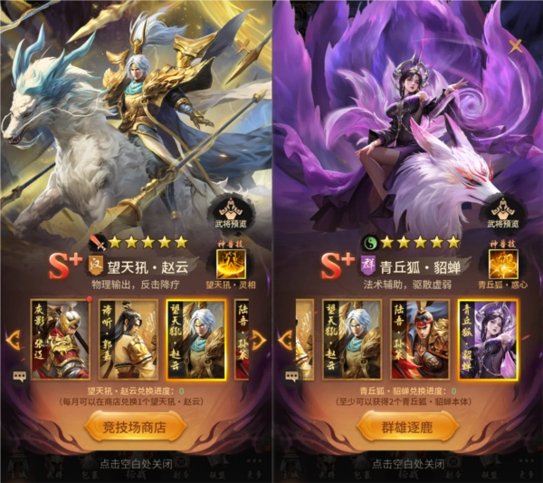 活动期间,玩家参与各类系统玩法并完成相应内容,就能获取不同的S+级神将。