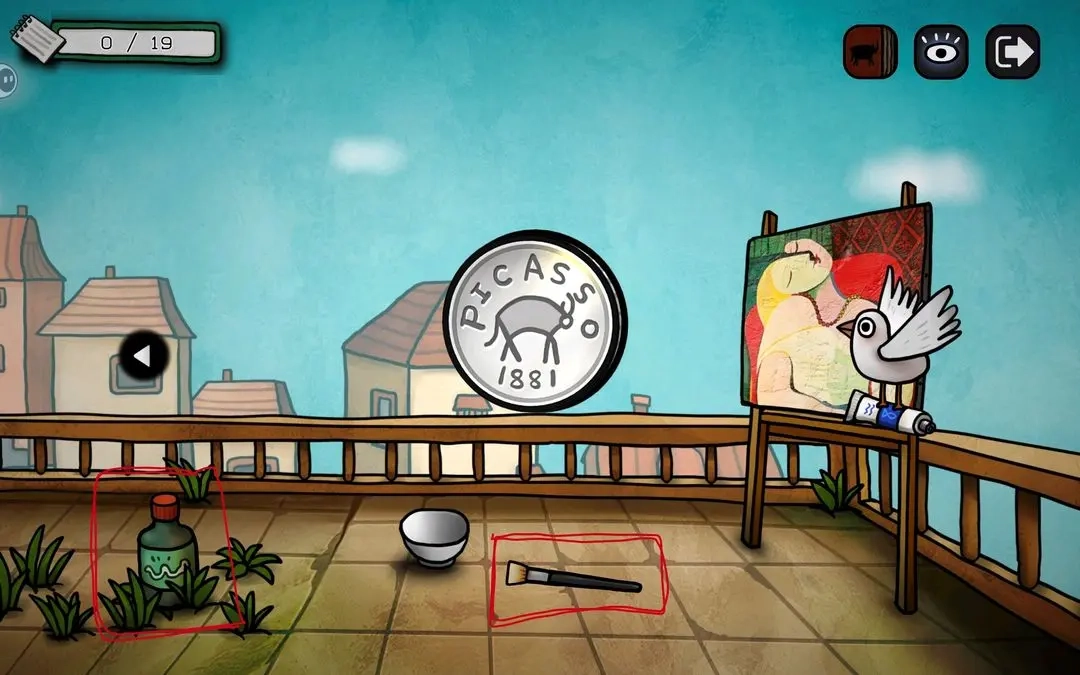 小鸟叼走蓝颜料,飞进屋顶,拾起画笔与杀虫剂,此时它仍衔着蓝颜料,后续便会触发相关情况。