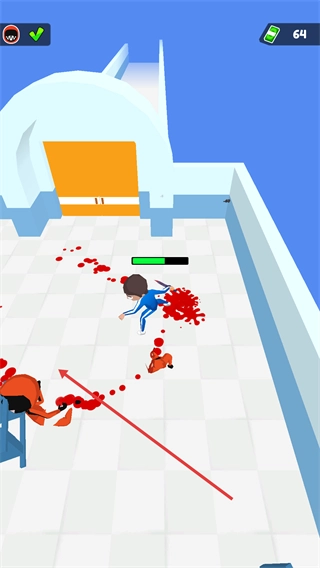 4、箭头指向某个倒地的敌人,左上角随即出现表示完成的对勾,这意味着关卡很快就要结束了。