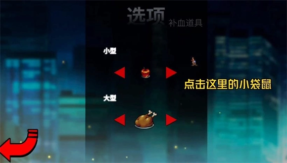 2、依次点击选项中的语言、声音、图像抬头显示、补血道具这几个选项,每个选项页面里都有一只很小的袋鼠,需要仔细看,把这些袋鼠都点一下就能解锁袋鼠了。