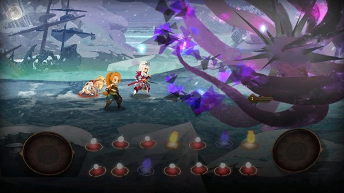 游戏采用回合制策略机制,消除方块能触发对应职业角色的攻击,单消、2消、4消分别对应角色不同的攻击技能;消除后方块会从右侧自动填补,同时敌方的行动冷却回合数减少1,当敌方冷却回合数归0时,敌方将执行行动并重置其行动冷却。