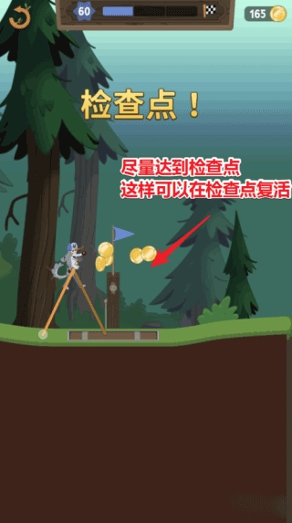 游戏里设置了检查点,你要尽量抵达这些检查点。因为一旦游戏失败,就能从最近到达的检查点重新开始游戏,不用从头再来。