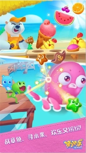 前方请注意,章鱼大Boss出现啦!会喷射毒液的章鱼又卷土重来?哎,其实它就是来搞破坏的,瞧它那副欠揍的模样,眼神里还透着点挑衅,必须把它赶跑才行。小动物们正团结起来对付章鱼,你还不赶紧去搭把手!