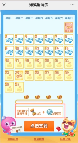 第二种获取方式是通过签到。关注海滨消消乐的微信公众号后,只要在这里持续签到,就能得到银币奖励。