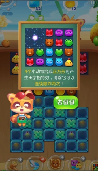 其实《消消乐海滨假日》融合了两款经典游戏的特效玩法。接下来就让小编为大家介绍具体有哪些特效动物吧!