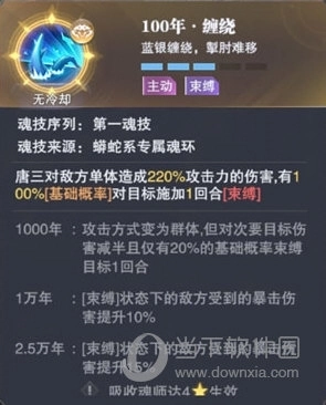 第一魂技“缠绕”在吸收千年以上的魂环后,会从单体效果转变为群体效果!