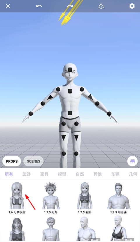 在底部导航栏点击“+”就能创建场景,一开始系统会推荐默认模特供玩家创作使用。要是想更换模特,还是通过点击底部导航栏的“+”,就能完成模特更换啦!