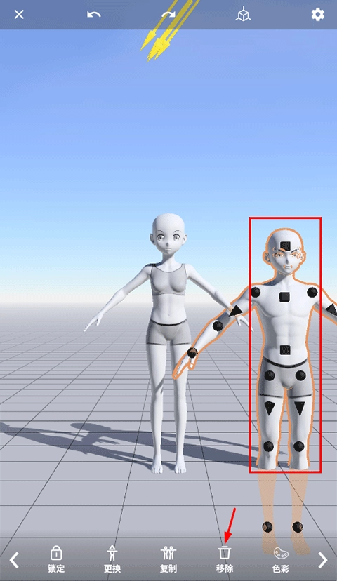 2、更换的模特将堆砌在场景中,此时点击你要删除的模特,在底部菜单栏区找到“移除”,点击“√”即可。