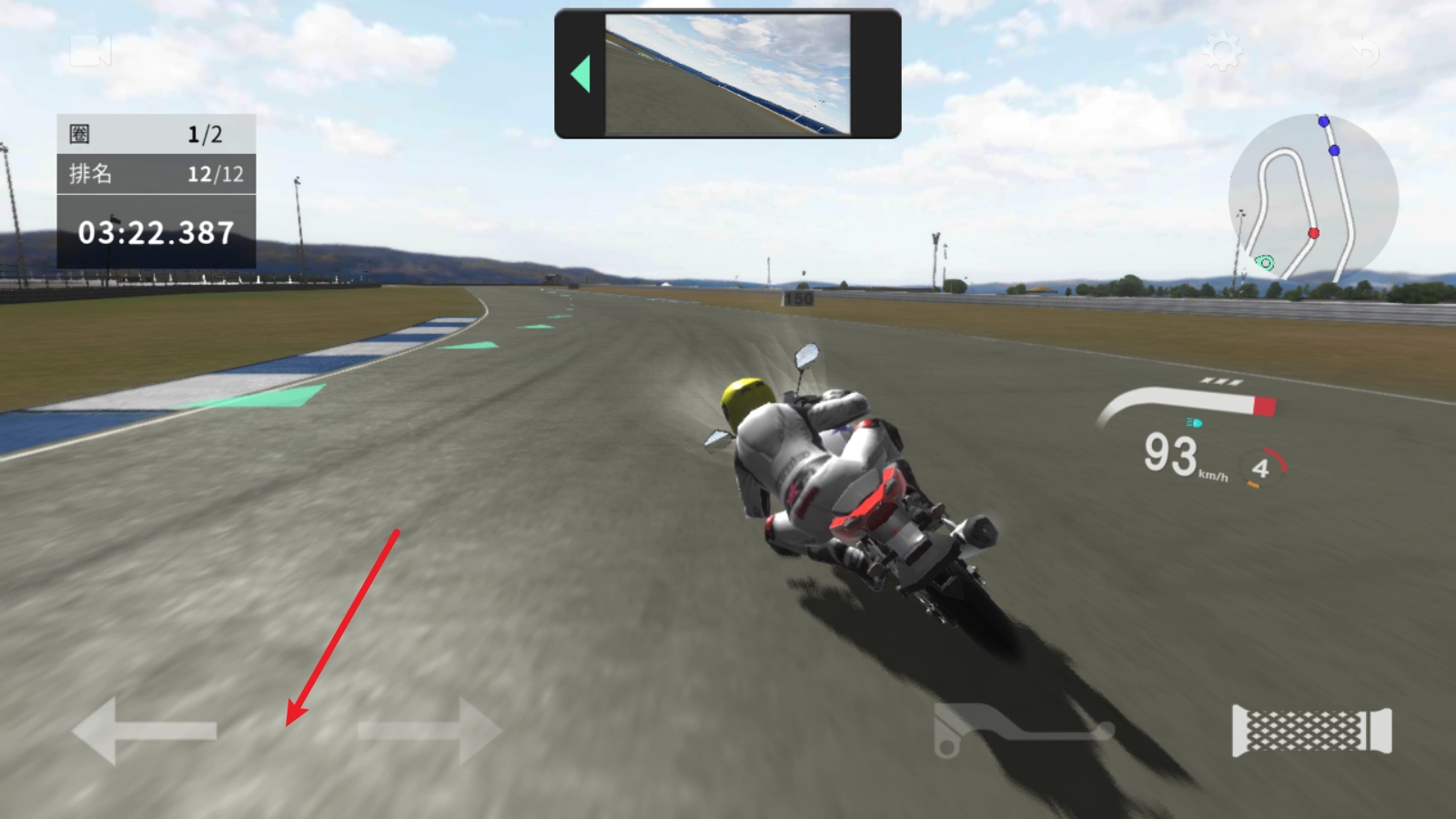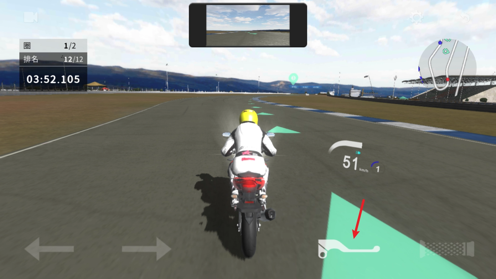 进入比赛后,我们得先踩油门让车子动起来,只要按住油门键就能持续加速。