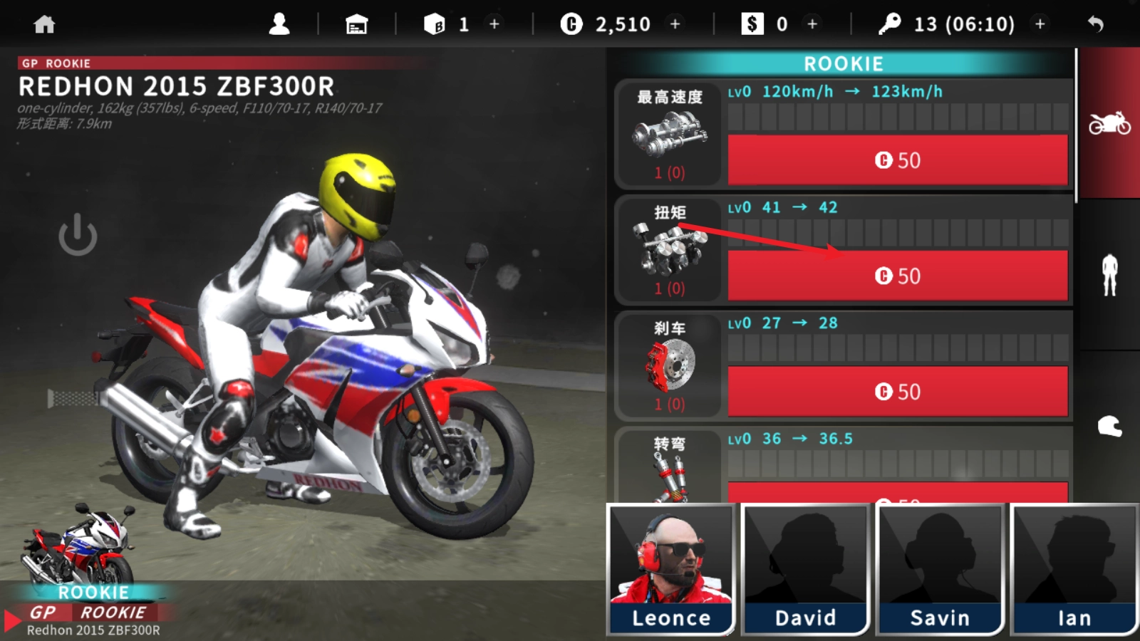 已有的摩托可以在仓库中对其进行改装,提升性能。