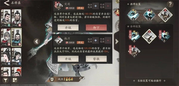 中勇义烈属于后期才能解锁的技能,前期阶段暂时无法获取,因此我们可以先用突进技能或者另一条技能线的拖刀计来过渡。突进技能在敌方目标相邻时能打出高额伤害,要是敌人处于分散状态,就可以带上拖刀计,不同关卡可以根据实际情况灵活切换这两个技能。