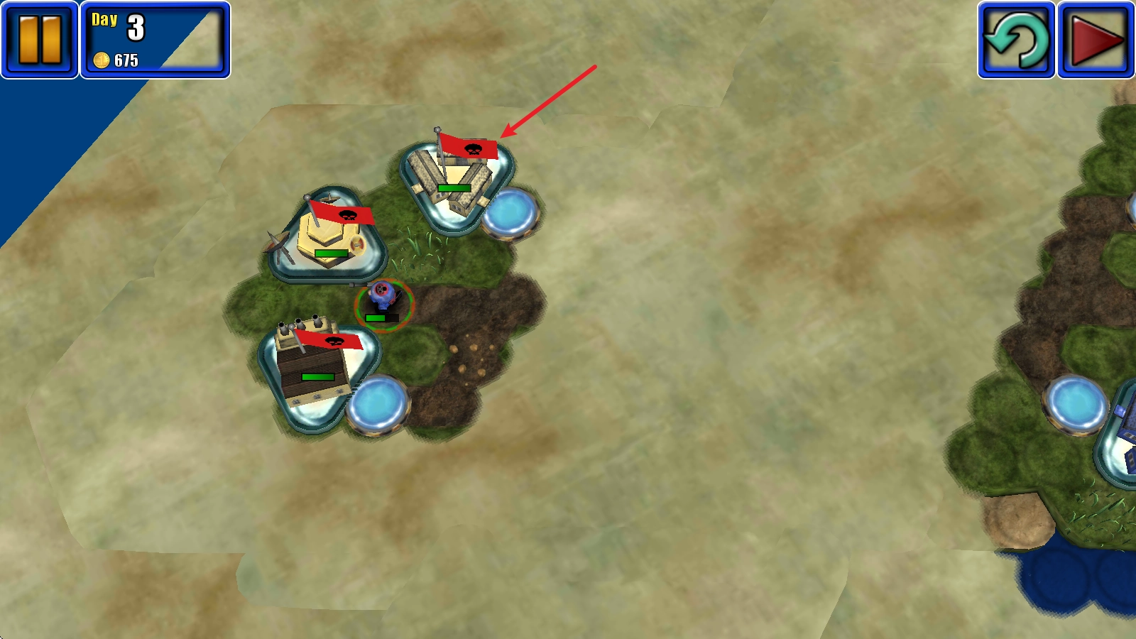 当没有可执行行动的区域时,点击右上角就能选择结束当前回合。