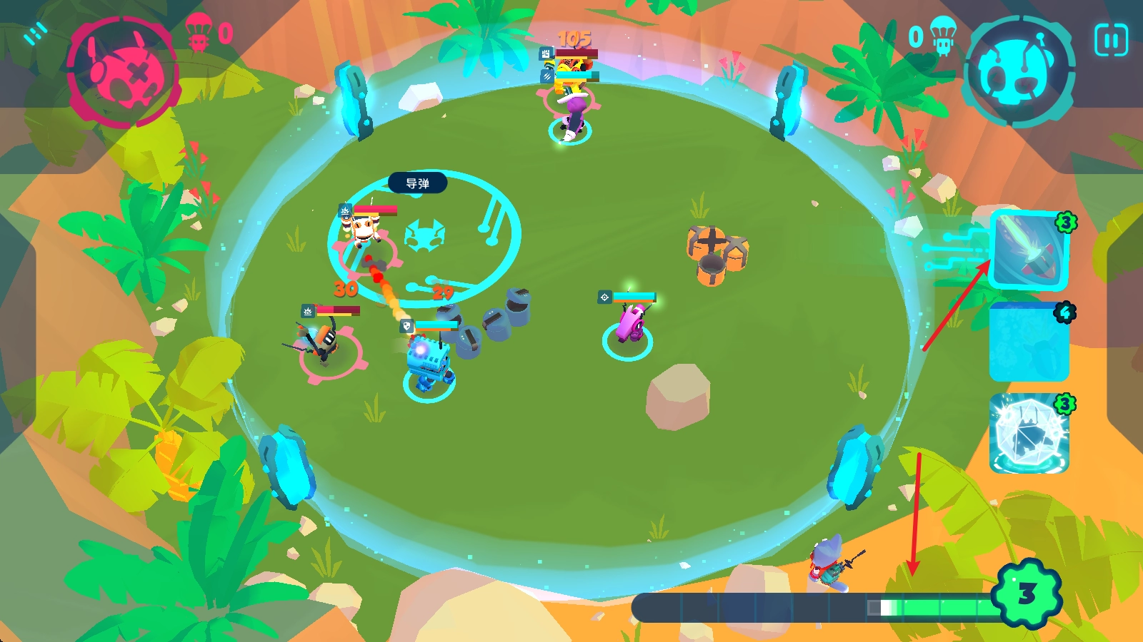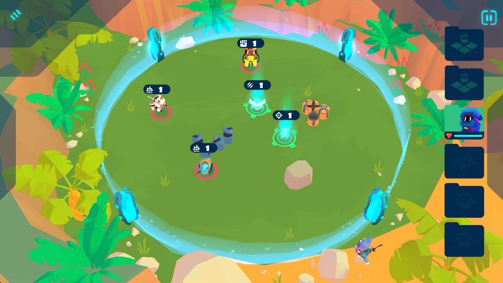 正式战斗打响后,机器人会自动锁定并攻击最近的敌人,我们也能释放技能提供援助——不过技能的使用需要消耗能量,而能量会缓慢自动恢复。