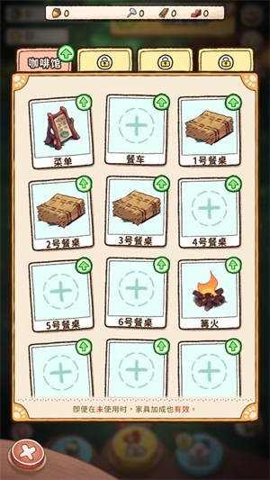 点击“升级”按钮,可消耗已赚取的金币,用于提升餐厅设施等级以及解锁全新的设备。