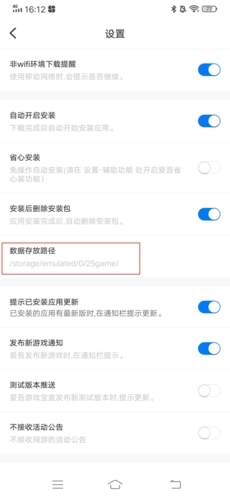 在设置页面就能找到数据存放的路径,就像图中显示的那样,页面下方呈现的就是存储路径。
