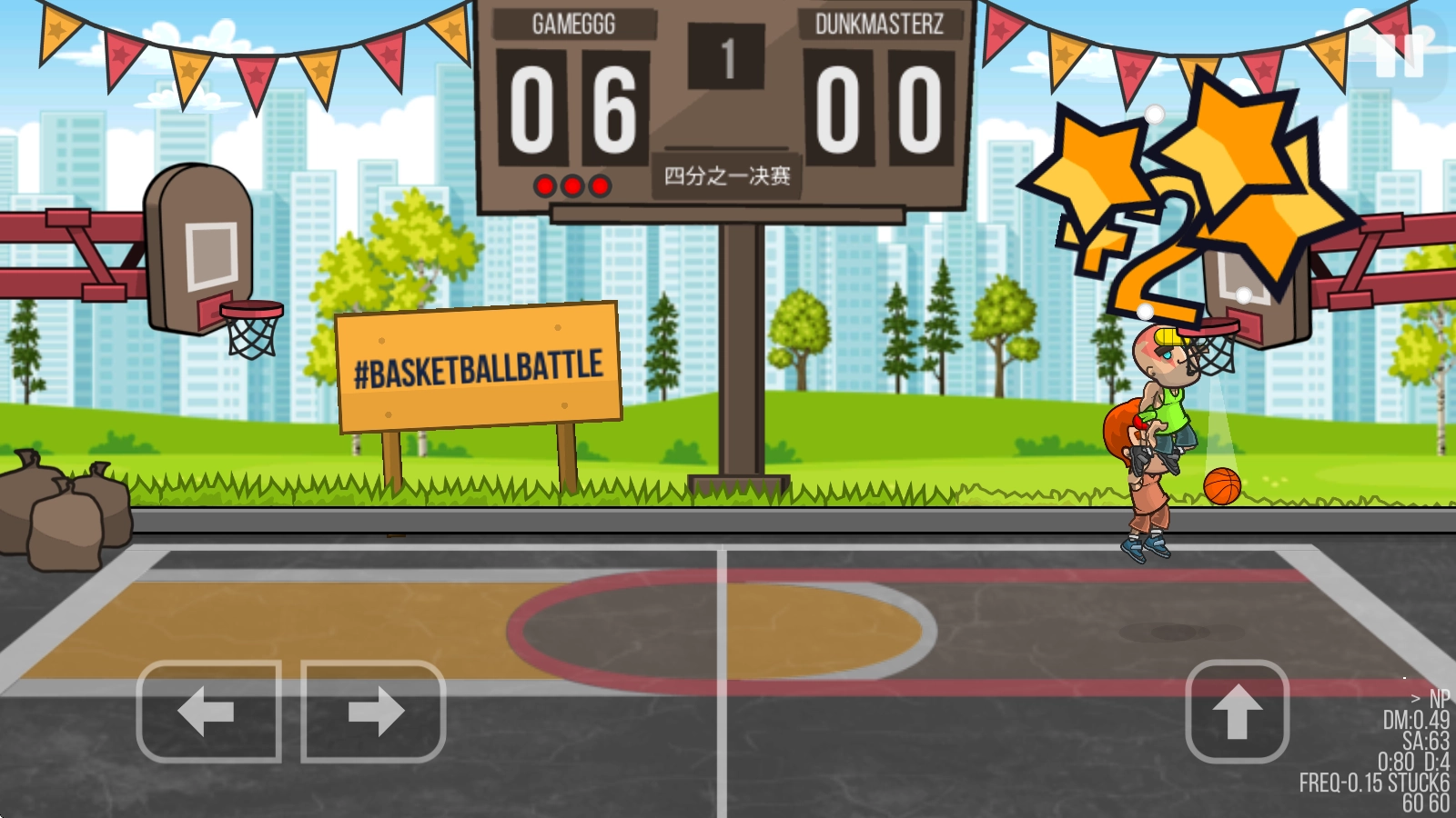 篮球之战(Basketball Battle),这是一款横版卡通风格的趣味篮球竞技游戏。在游戏里,我们将开启一对一的精彩篮球对决,尽管操作简单,但各类专业篮球动作都十分到位,像上篮、远射、扣篮、抢断等,你可以凭借灵活的操作去赢得每场比赛!除此之外,游戏中还有丰富多样的球员可供选择,而且还能为他们搭配各种个性服装,甚至连篮球都能自定义呢!
