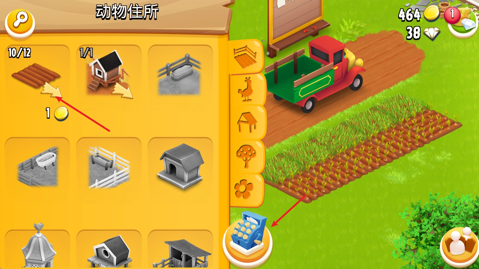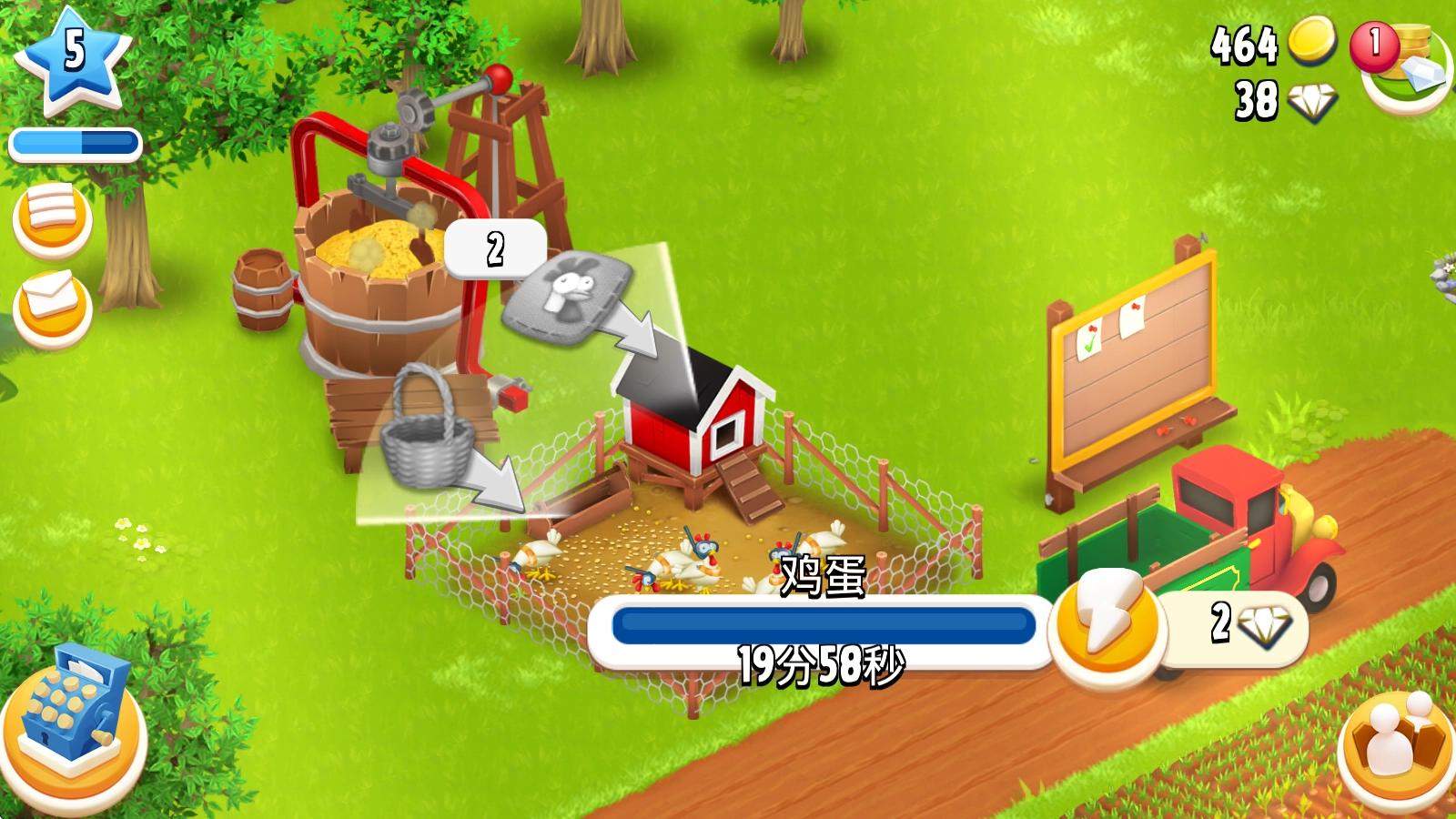 随后点击牧场,可以给鸡喂饲料,让它们来生产鸡蛋。