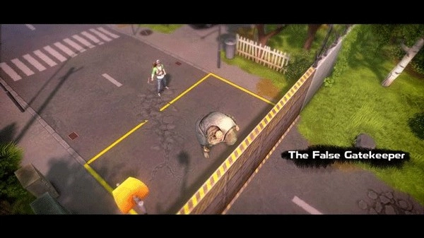 回到路上继续往东行进,很快你就会碰到一个体型庞大的敌人拦在前方——那是个大胖子。
