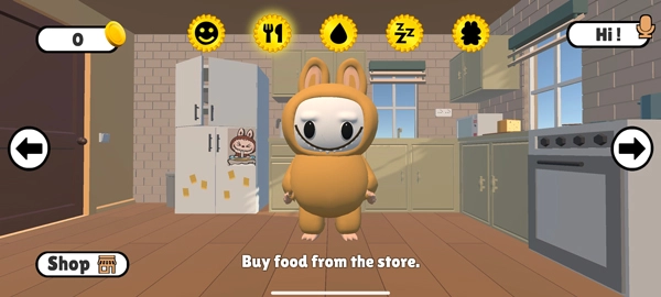 点击餐具,玩家可在商店购买食物给它喂食