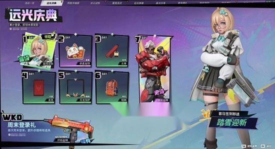 新人们注意啦!这里有专属福利:只要坚持签到,就能把桃桃的高人气皮肤【踏雪迎新】和夜巡的【赤炎战甲】收入囊中,这两款皮肤是常驻签到奖励哦,累计签到满一周就能全部拿到手!另外,周末登录游戏还能免费领取UZ1-9的稀有枪皮【炽焰金麟】,千万别错过啦!