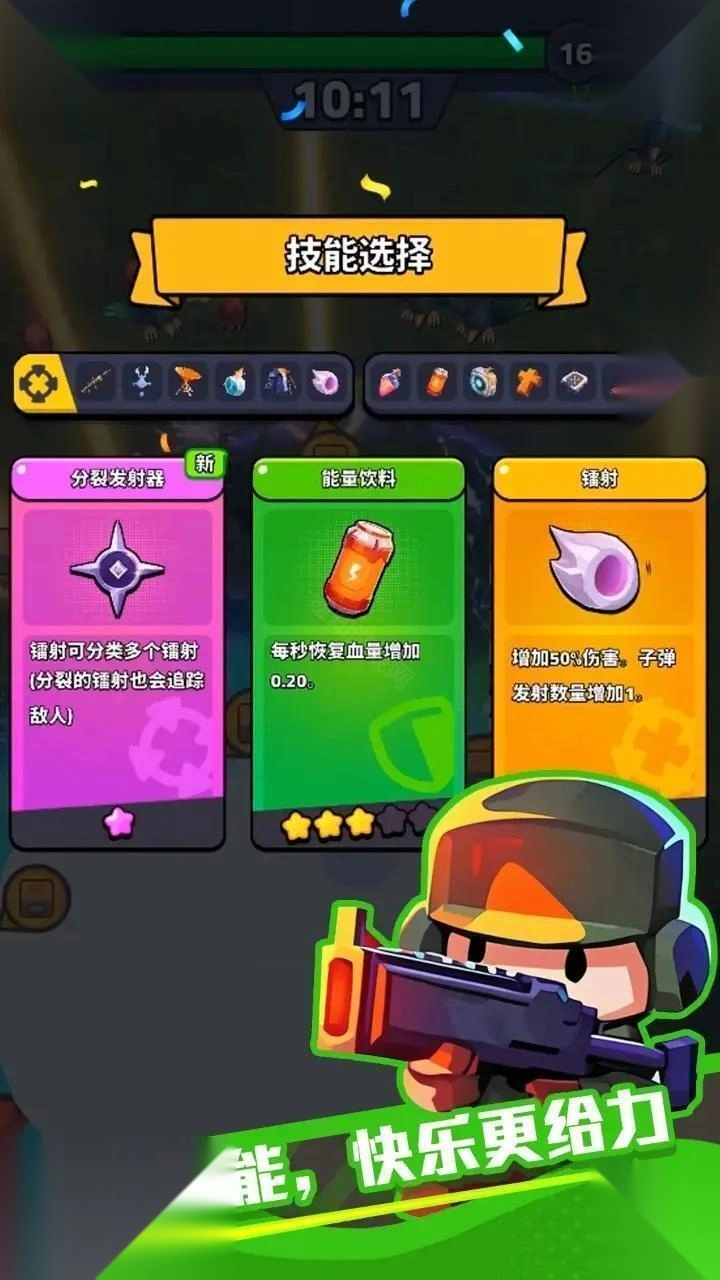 单局时长设定为一刻钟,这个模式的好处在于能启用辅助瞄准功能,不过它也有个限制——不允许玩家消极挂机,而且当经验值积累到上限时,需要自己手动去挑选想要的技能,因此比较适合时间充裕或者有特定需求的玩家体验。