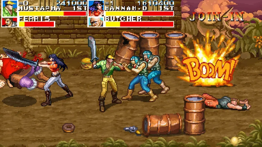 街机恐龙是一款充满刺激感的横版街机动作游戏,整体采用美式废土风格的美术设计。这款游戏获得了《Xenozoic Tales》漫画的独家授权,对原作中的角色形象、场景设定以及核心剧情都进行了细致还原。玩家能够挑选心仪的角色投身战斗,尽情发挥自己的操作技巧,重温街机厅里那种热血沸腾的对战氛围。游戏内包含丰富多样的装备可供收集,还有各类副本任务等待挑战,具备相当出色的可玩性。通过持续参与对战,玩家可以逐步提升角色等级,解锁更多有趣的玩法内容。