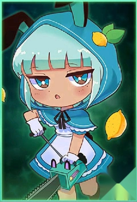 绿色头发,穿着绿色衣服与兜帽,有一对黑色兔耳。