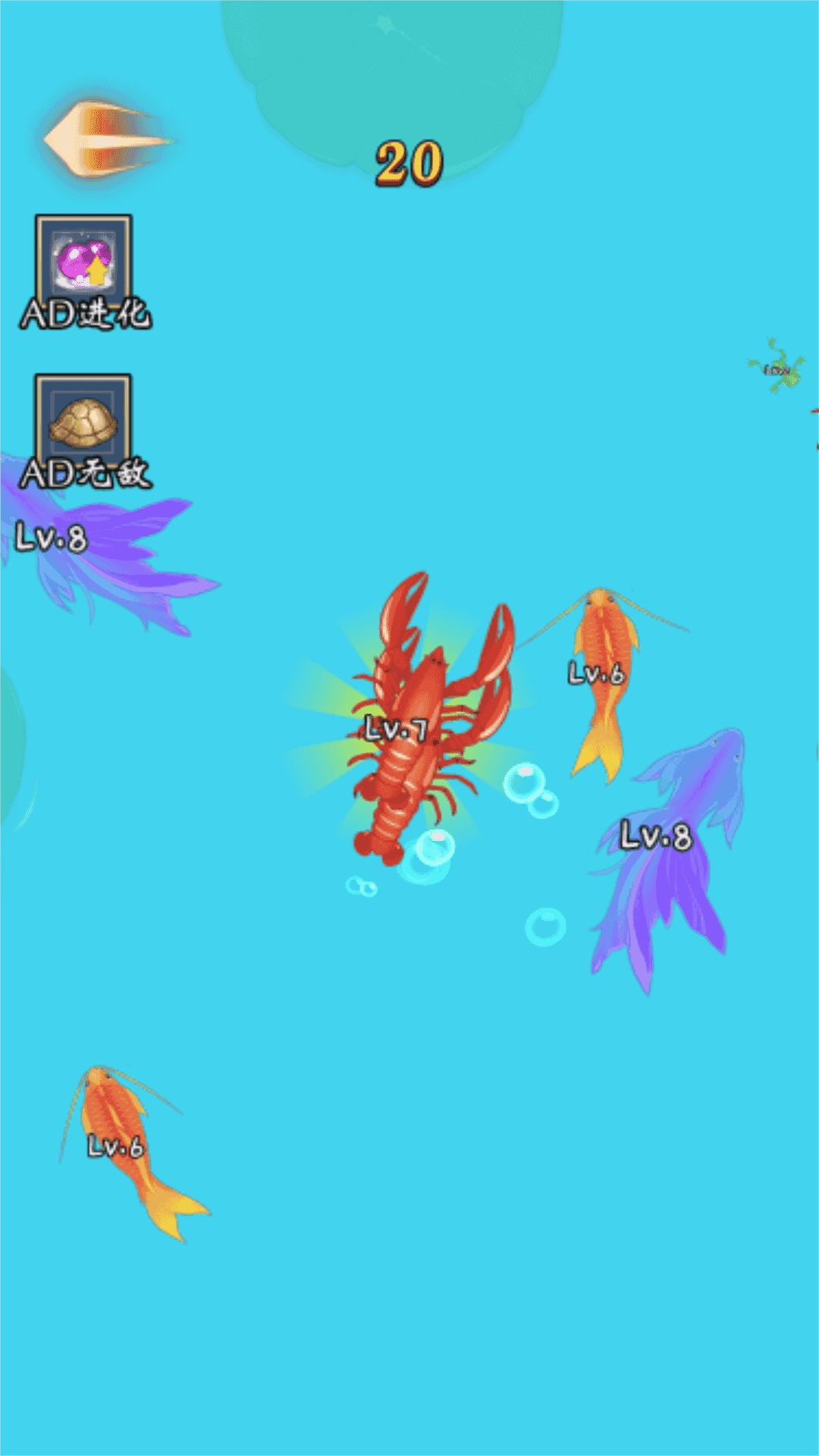 3、在游戏中,大鱼吞小鱼、小鱼吃浮游生物,让玩家可以了解到自然界的食物链。