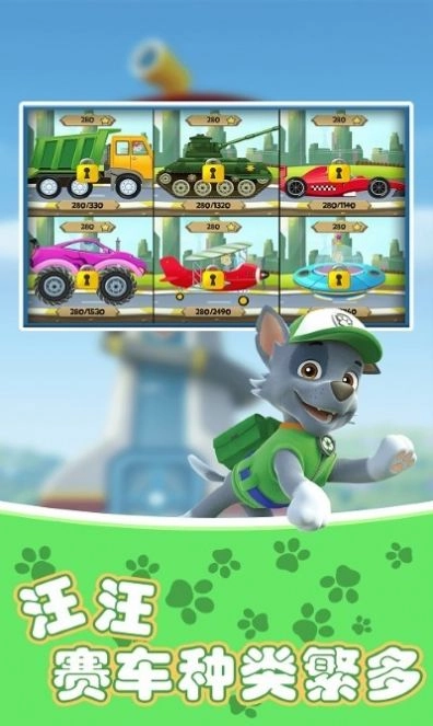 汪汪赛车小队,车队出发去清理赛车。你可以选择各种各样的车,在公路上展示你的赛车实力。可以快速冲刺,完成赛车挑战。不同的赛道有不同的体验。可以快速完成各自团队的任务,解锁升级自己的汽车,完成不同的挑战,快速进入冲刺阶段,享受无限欢乐。