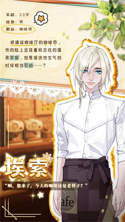 在29城,他是大家公认的“咖啡灵魂人物”,经营着全城唯一一家真正提供现磨咖啡的店铺——玻璃球咖啡厅。这座城市虽不算大,但他的咖啡手艺早已在人们口中传开,引得无数咖啡爱好者特意赶来。他做的每一杯咖啡都如同一件精致的艺术品,而他自己也总是在吧台后静静地调试咖啡豆,等待着能懂得他咖啡风味的人。