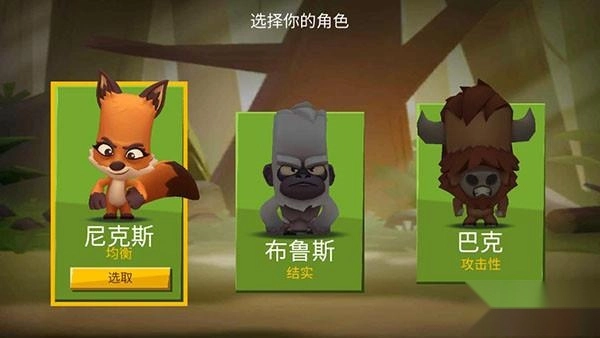 1、进入动物王者游戏后选择你的角色,有均衡、结实、攻击性三种角色可供挑选;