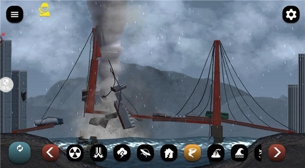 1、进入后,你会看到一个功能完备的控制面板,里面有龙卷风、陨石雨、火山喷发等多种灾害选项。你可以任意选择一种来摧毁目标城市,体验极致的破坏快感。