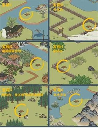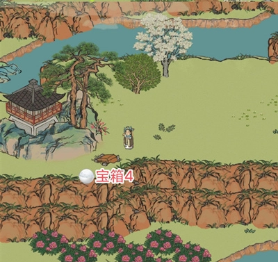 宝箱1:完成秀坊寻钥任务后,沿着河岸往下走,修复断桥的石栏就能找到它。