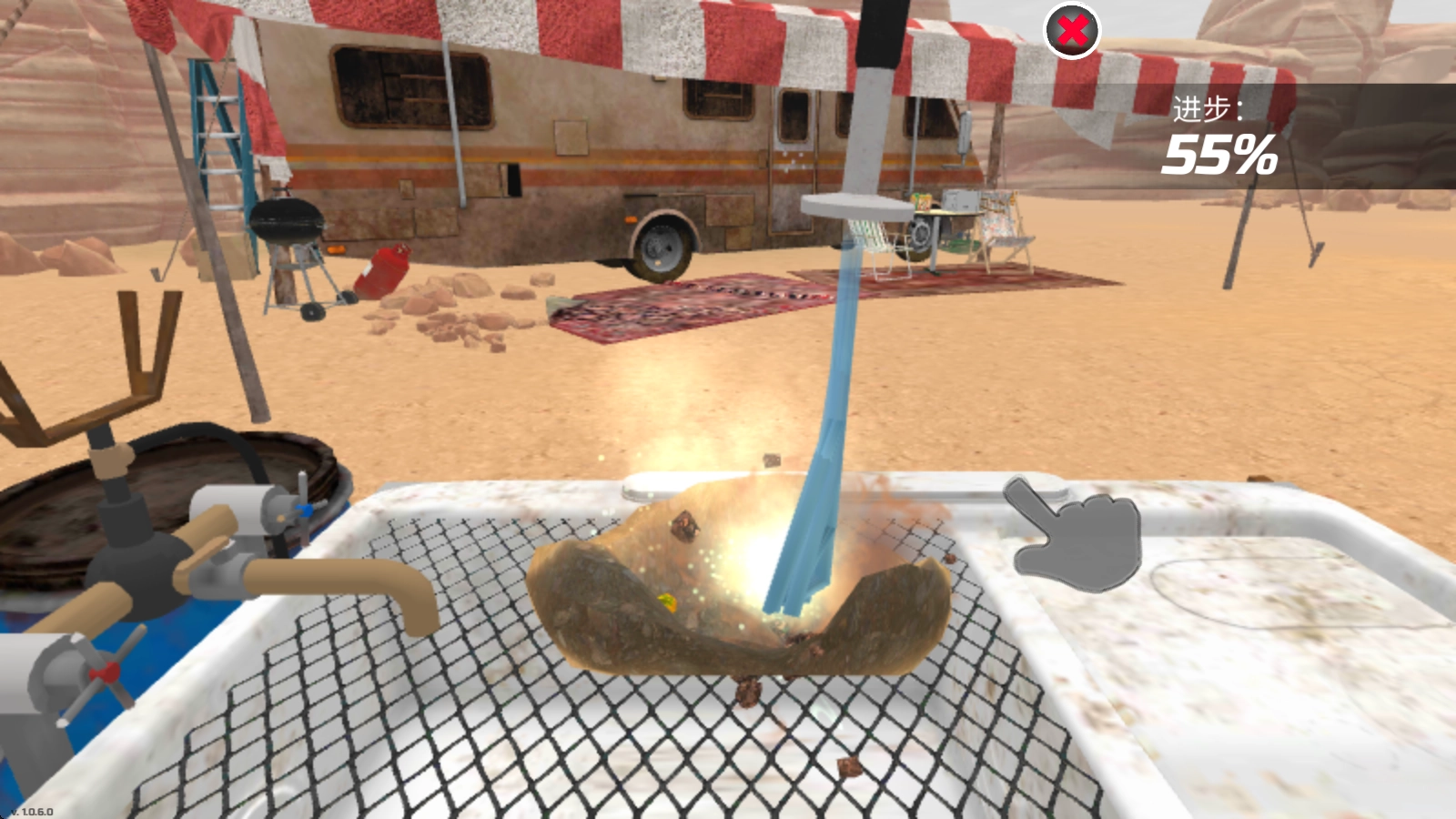 黄金矿工模拟器是一款围绕淘金展开的沙盒模拟游戏。你可以借助探测器搜寻信号,挖掘矿石,再到精炼站进行加工处理,最后按照当前的价格将其出售!还能在商店里升级工具,修理拖拉机来解锁新的区域!