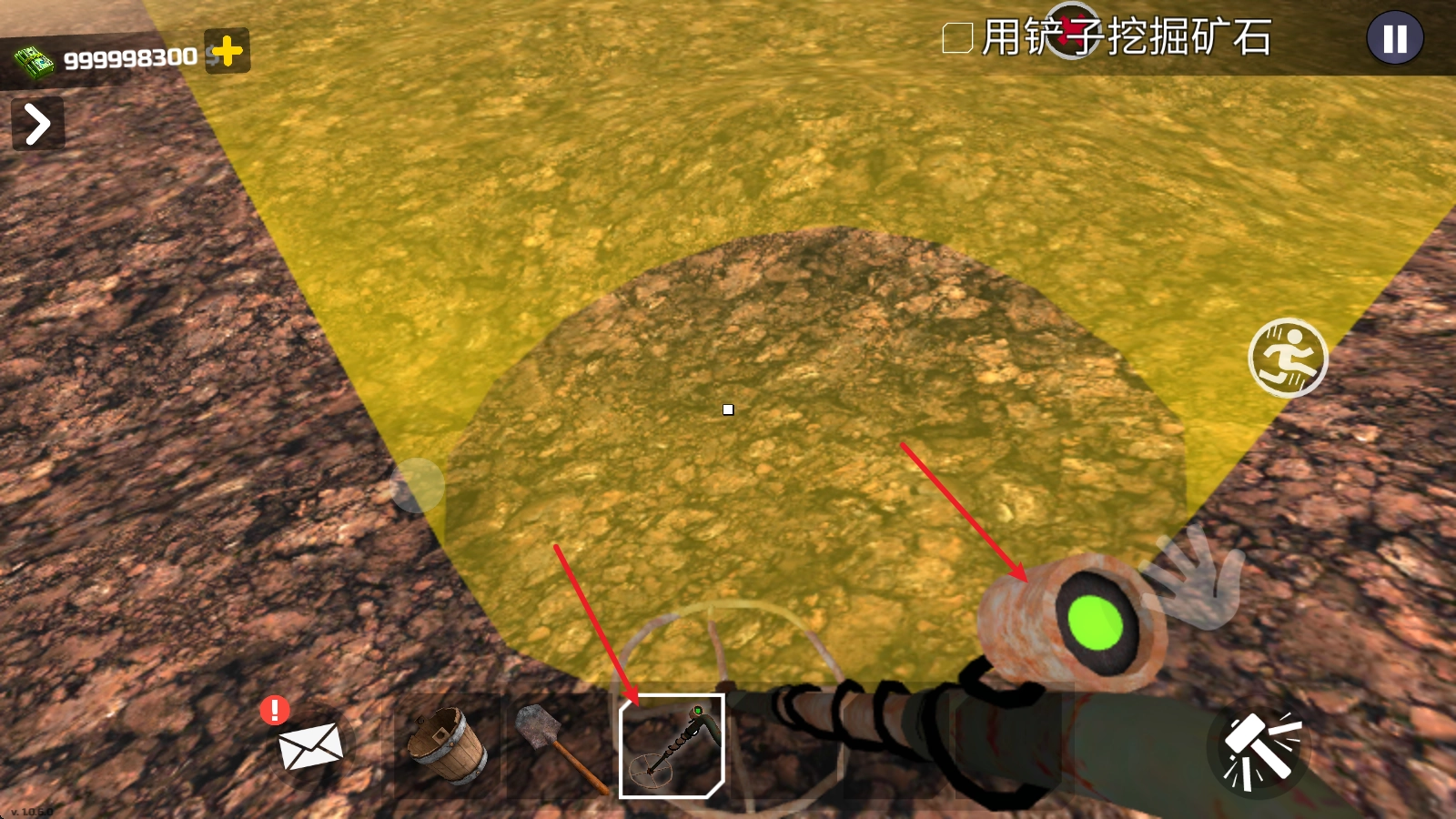 进入游戏后,我们先取出探测仪,在周围搜寻矿源,一旦探测仪的绿灯开始闪烁,就说明附近存在矿脉。