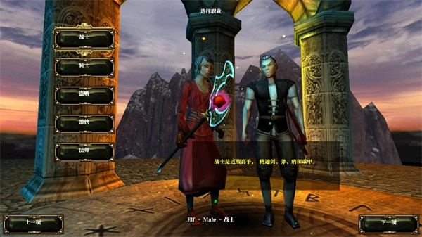 这款游戏提供了三类可选种族,包括人类、精灵与巨魔;同时设有四种职业,分别是战士、盗贼、游侠和法师。