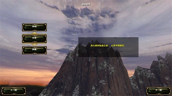 玩家进入游戏后,系统会提供休闲、正常、困难三种不同的游戏难度选项,玩家可依据自身的游戏经验来挑选适宜的难度进行体验。