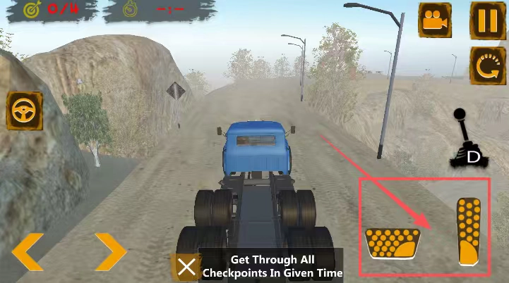 4、握住方向盘操控卡车,留意油表情况进行换挡操作,务必按时经过所有检查点。