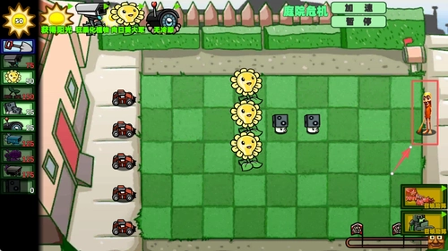 1. 在进入关卡之前,挑选初始的植物阵容。待战斗开启后,依靠收集阳光来种植诸如向日葵、豌豆射手、坚果墙之类的基础植物。