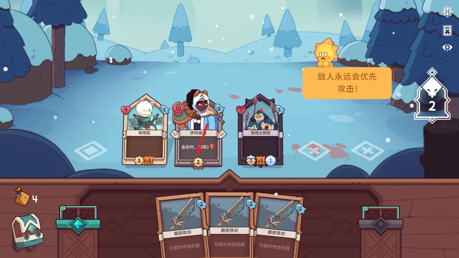 这个雪团造型的小家伙一开始只能打出1点伤害,不过当它裹上雪球增益效果后,每次攻击的威力都会跟着叠加;它的血量比较脆,得优先安排保护措施,要是和刚解锁的小狗伙伴组队,能形成很稳的搭配。