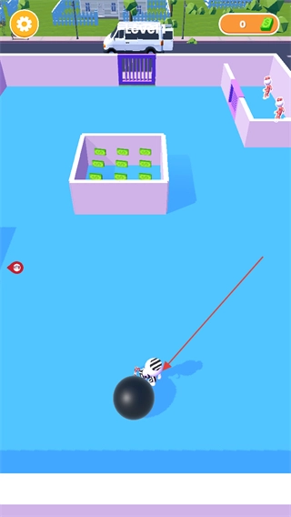 3、当收集到足够的钞票后,角色便会自行前往下一个区域,接着借助大球破坏障碍,为逃脱做好准备。