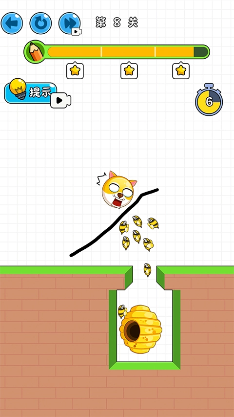 在游戏里,玩家要做的就是通过画线来保护狗头们不被黄蜂蛰到,所以得提前规划好线条,守护好这些狗头。