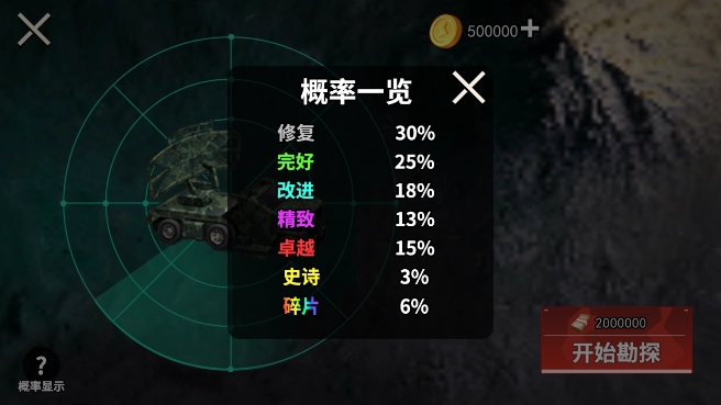 勘探:点击勘探按钮有机会获得稀有武器装备,但每次勘探都需要消耗一定的费用哦!