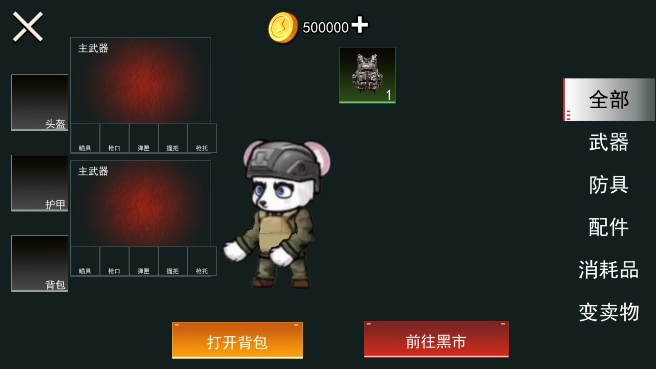 战备环节:在正式开启游戏前,你需要挑选好自己的装备,主武器、头盔、护甲、背包以及各类消耗品,都能在这个界面找到。